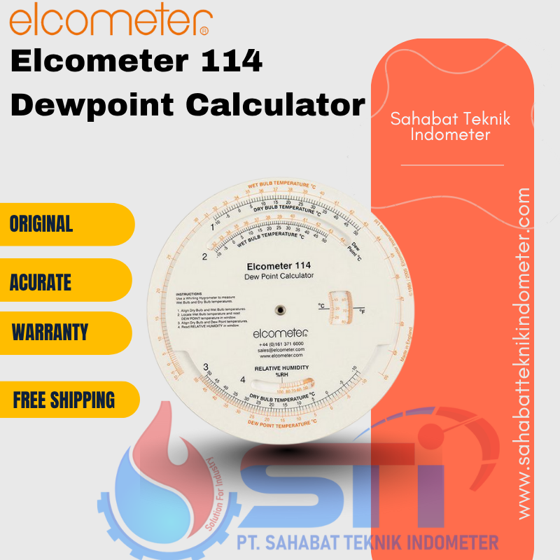 Elcometer 114 Dewpoint Calculator adalah alat praktis yang dirancang untuk membantu pengguna menentukan titik embun dalam berbagai kondisi lingkungan. Dengan kalkulator ini, pengguna dapat mengukur suhu, kelembapan relatif, dan menghitung titik embun dengan mudah dan akurat. Alat ini sangat berguna dalam industri pengecatan, pelapisan, atau aplikasi lain yang membutuhkan kontrol kelembapan untuk mencegah kemungkinan kerusakan pada material yang digunakan.
