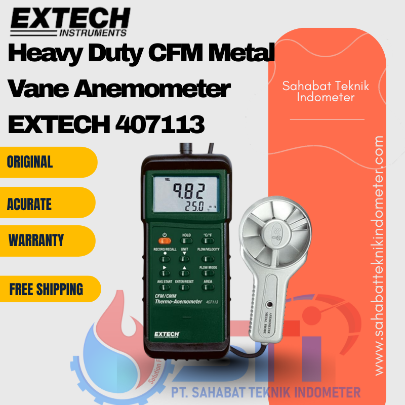 Heavy Duty CFM Metal Vane Anemometer EXTECH 407113 tidak hanya memberikan kenyamanan dan hasil berkualitas tinggi, tetapi juga menjamin investasi yang awet untuk kebutuhan pengukuran lingkungan udara Anda.