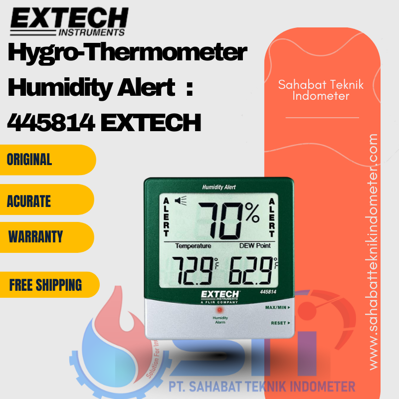 Hygro-Thermometer Humidity Alert : 445814 EXTECH adalah pilihan terbaik untuk memastikan lingkungan Anda selalu dalam kondisi ideal. Segera miliki dan rasakan kemudahannya sendiri.