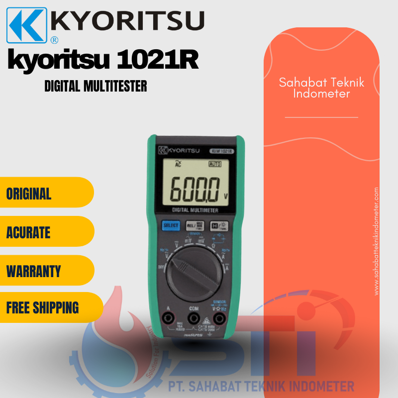Kyoritsu 1021R Digital Multitester adalah perangkat pengukuran listrik yang dirancang untuk memenuhi berbagai kebutuhan teknisi dan elektrisi modern. Multitester ini mampu mengukur tegangan AC/DC, resistansi, frekuensi, dan kapasitas, serta menyediakan fungsi tambahan seperti pengujian dioda dan kontinuitas. Dengan presisi yang tinggi, Kyoritsu 1021R membantu dalam memastikan keamanan sistem listrik dan memastikan akurasi dalam setiap analisis listrik Anda. Perangkat ini ideal untuk digunakan dalam industri, perbaikan rumah, dan laboratorium.