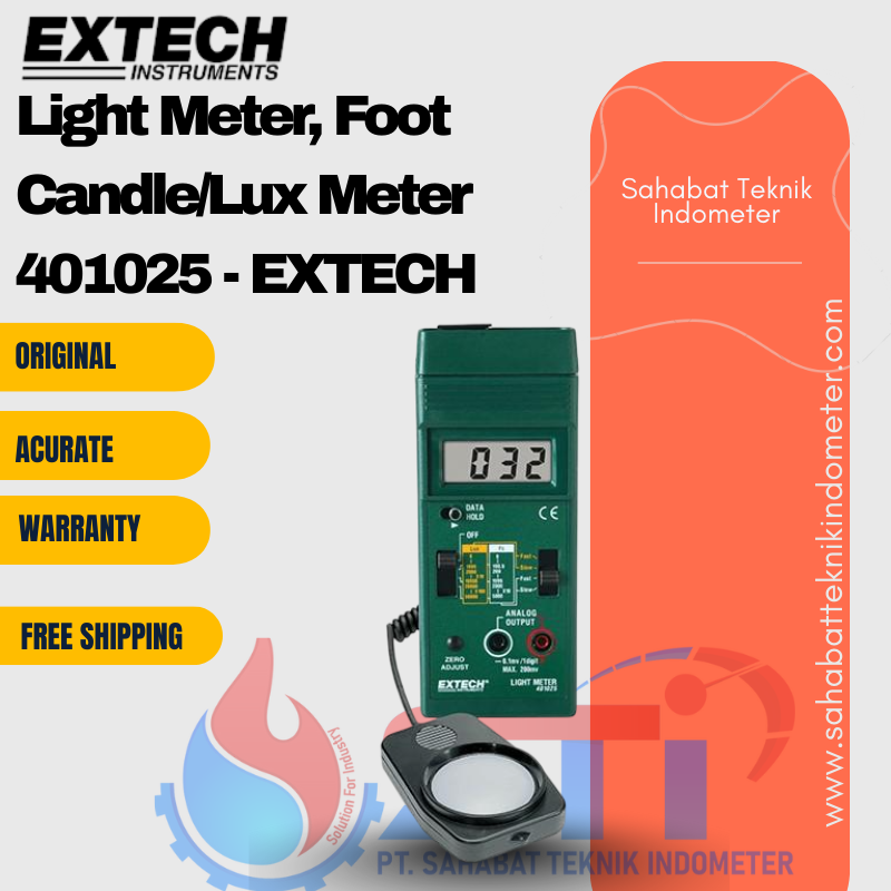 Light Meter, Foot Candle/Lux Meter 401025 – EXTECH adalah solusi efisien dan terpercaya untuk kebutuhan pengukuran intensitas cahaya Anda. Dengan alat ini, pencahayaan yang ideal kini bisa dicapai dengan mudah dan profesional.