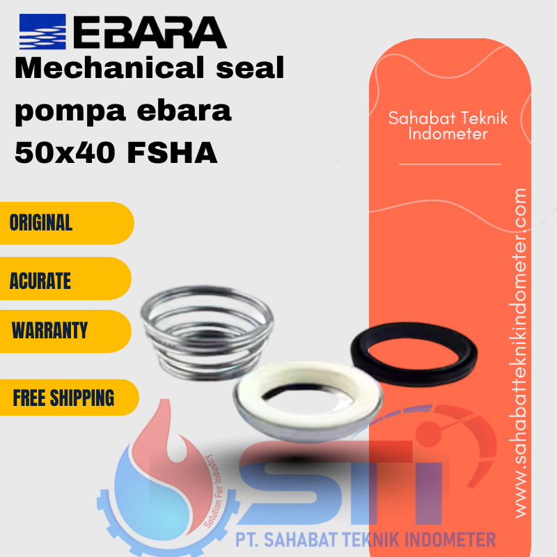 Mechanical Seal Pompa Ebara 50×40 FSHA merupakan komponen vital yang berfungsi untuk mencegah kebocoran cairan atau gas pada sistem pompa. Dengan teknologi penyegelan yang presisi, produk ini dirancang khusus untuk menjaga efisiensi pompa dalam berbagai aplikasi industri maupun rumah tangga. Fungsinya sangat penting dalam memastikan kinerja optimal pompa serta menjaga lingkungan kerja tetap bersih dan bebas dari kontaminasi.