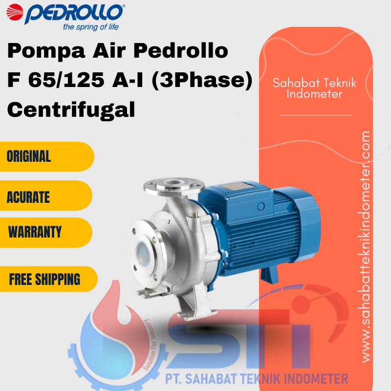 Berikut adalah rincian spesifikasi untuk Pompa Air Pedrollo F 65/125 A-I (3 Phase), disajikan tanpa tabel: