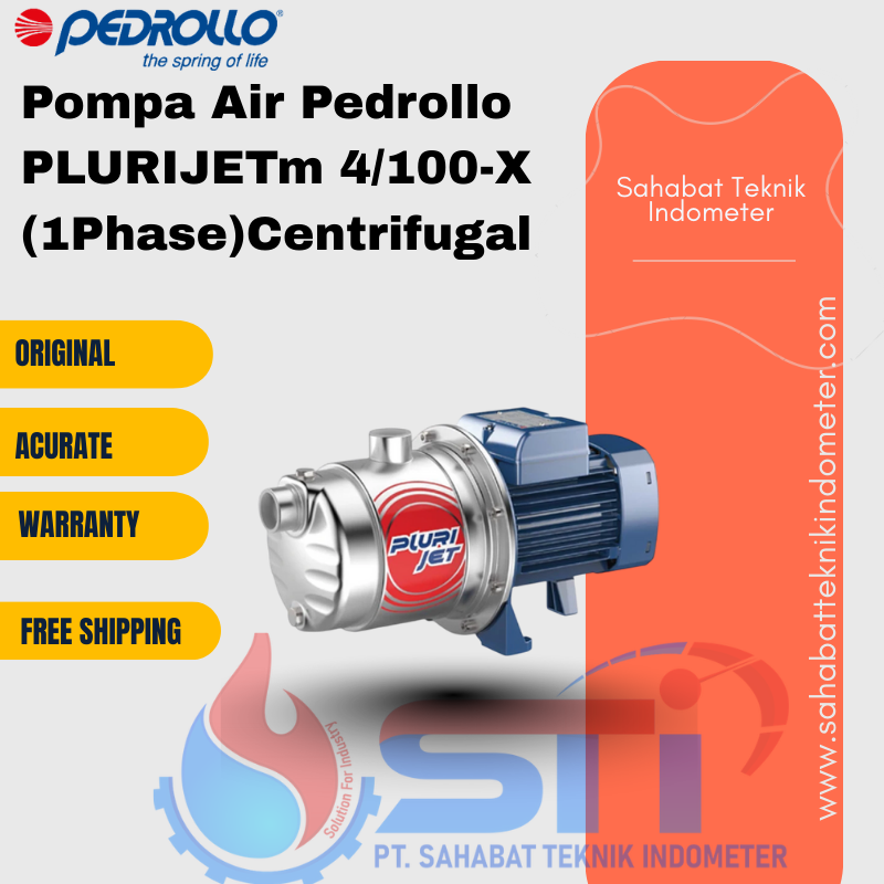 Pompa Air Pedrollo PLURIJETm 4/100-X (1Phase) Centrifugal merupakan solusi tepat untuk kebutuhan distribusi air, baik untuk rumah tangga maupun industri ringan. Dimensi kompak dan teknologi mutakhir membuat pompa ini menjadi pilihan unggul bagi pengguna yang menginginkan efisiensi, kekuatan, serta performa maksimal dalam satu produk.