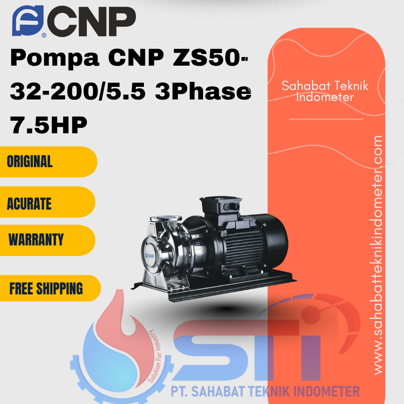 Berikut adalah spesifikasi teknis untuk pompa CNP ZS50-32-200/5.5 3Phase 7.5HP: