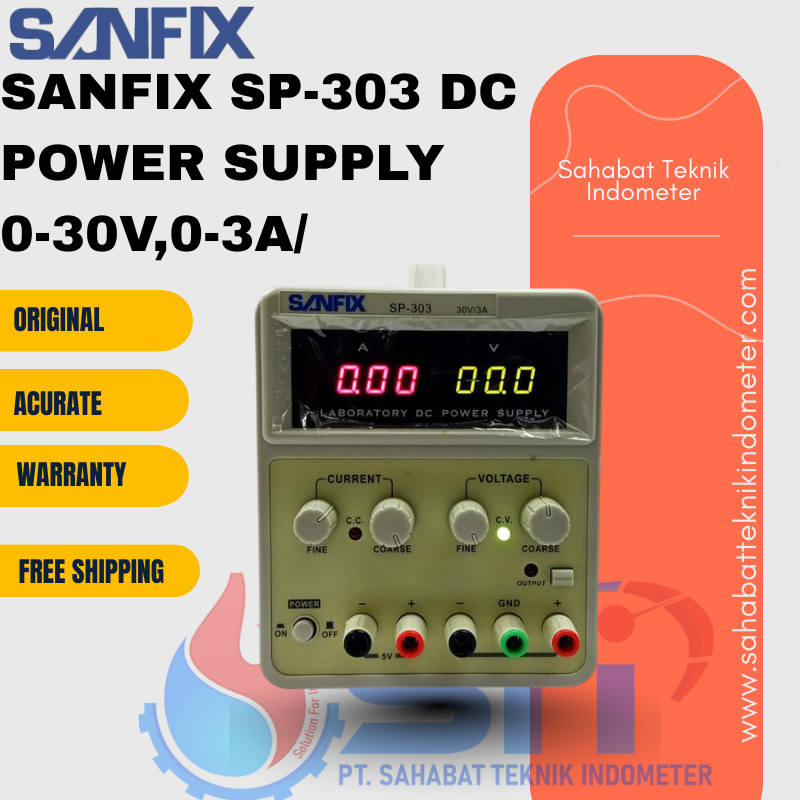 SANFIX SP-303 DC Power Supply adalah alat canggih yang dirancang untuk memberikan pasokan daya searah (DC) yang stabil dan presisi tinggi. Dengan rentang output yang fleksibel dari 0 hingga 30V dan arus maksimal hingga 3A, perangkat ini ideal digunakan untuk berbagai kebutuhan, mulai dari pengujian perangkat elektronik, reparasi alat, hingga mendukung penelitian laboratorium. Fungsi utamanya adalah sebagai sumber daya yang handal, memungkinkan pengguna untuk mengontrol tegangan dan arus sesuai kebutuhan secara akurat.