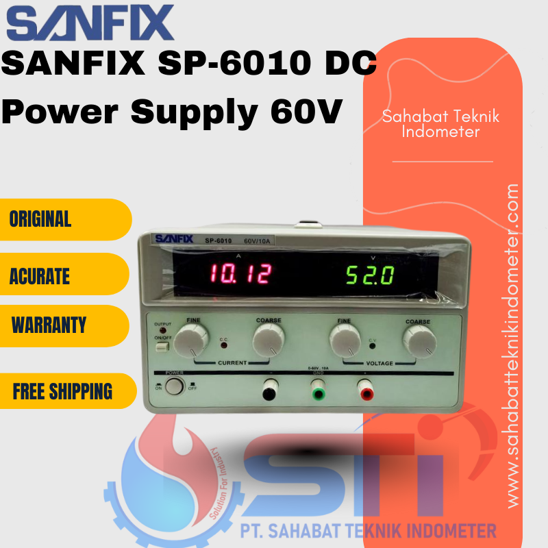 SANFIX SP-6010 DC Power Supply 60V adalah solusi ideal untuk kebutuhan pasokan daya yang presisi dalam berbagai aplikasi teknis. Alat ini dirancang untuk memberikan pasokan daya stabil hingga 60 volt, menjadikannya pilihan yang sangat baik untuk pekerjaan laboratorium, pendidikan, atau perbaikan komponen elektronik. Dengan fungsi kontrol tegangan dan arus yang akurat, Anda dapat memastikan performa terbaik untuk berbagai perangkat elektronik yang Anda gunakan.