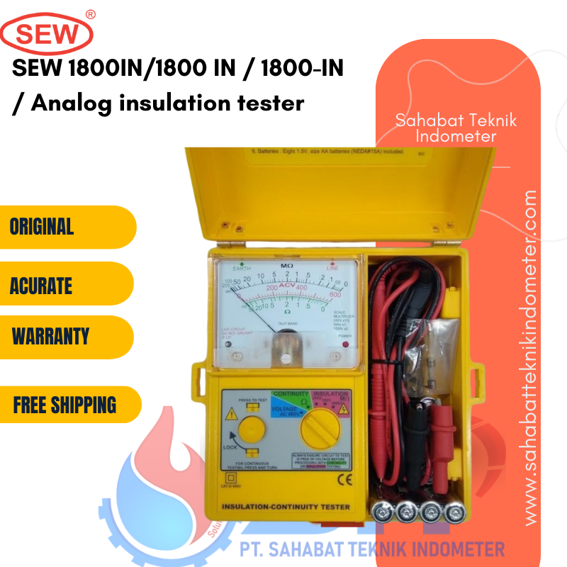 Analog Insulation Tester SEW 1800IN adalah alat pengukur yang dirancang khusus untuk menguji isolasi dalam sistem kelistrikan. Dengan kegunaan utama untuk mengukur resistansi isolasi, alat ini membantu dalam menentukan apakah suatu sistem atau perangkat aman untuk digunakan atau tidak. Pengujian isolasi sangat penting dalam menjaga keandalan dan keamanan instalasi listrik, sehingga mencegah terjadinya kebocoran arus yang bisa membahayakan pengguna. SEW 1800IN memfasilitasi teknisi listrik dan profesional lainnya dalam melakukan evaluasi menyeluruh terhadap sistem kelistrikan yang mereka tangani.