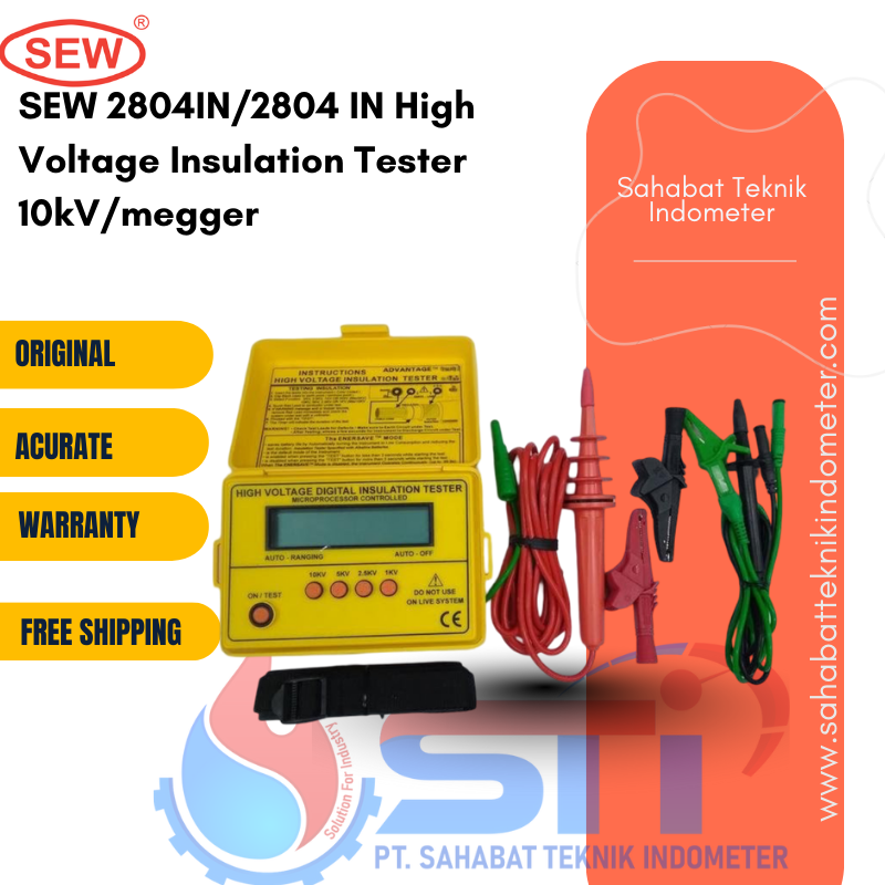 Sew 2804IN merupakan tester isolasi tegangan tinggi yang dirancang untuk mengukur resistansi isolasi pada sistem listrik dengan tingkat keamanan dan akurasi yang tinggi. Dengan kemampuan pengukuran tegangan hingga 10kV, alat ini menjadi pilihan ideal bagi teknisi dan insinyur dalam melakukan pengujian pada peralatan listrik yang memerlukan pengukuran isolasi yang presisi. Salah satu fungsi utama dari Sew 2804IN adalah untuk memastikan bahwa sistem kelistrikan beroperasi dengan baik dan mencegah terjadinya gangguan akibat lapisan isolasi yang lemah.