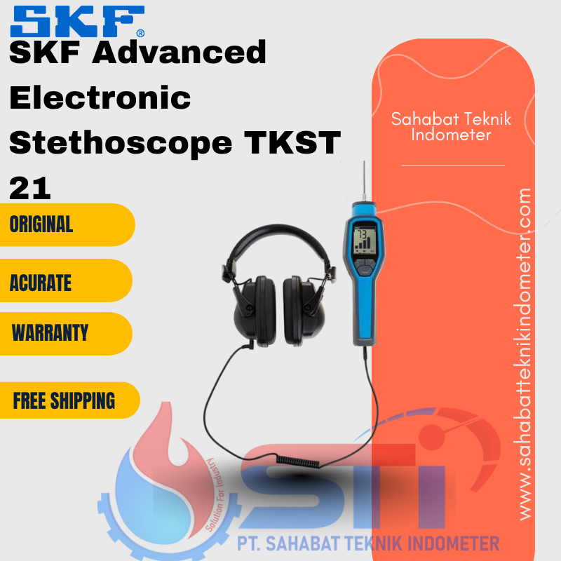 SKF Advanced Electronic Stethoscope TKST 21 memiliki fungsi utama untuk mendeteksi suara abnormal pada komponen mesin, seperti bantalan, gearbox, atau bagian lainnya sesuai keperluan pemeliharaan. Dengan mikrofon sensitivitas tinggi dan filter frekuensi yang disesuaikan, alat ini mampu memisahkan suara yang relevan dari kebisingan lingkungan. Selain itu, layar digitalnya memberikan visualisasi yang jelas, mempermudah analisis data suara yang didapatkan.