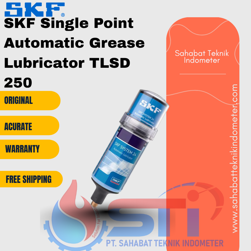 Dengan keunggulan dalam hal kemudahan penggunaan, presisi, dan efisiensi operasional, SKF Single Point Automatic Grease Lubricator TLSD 250 merupakan pilihan ideal untuk pelumasan peralatan industri Anda. Jadikan peralatan Anda lebih awet dan performa lebih maksimal dengan alat pelumas otomatis yang dirancang untuk memenuhi kebutuhan masa kini. Tingkatkan produktivitas Anda sekaligus menghemat waktu dan biaya dengan SKF TLSD 250.